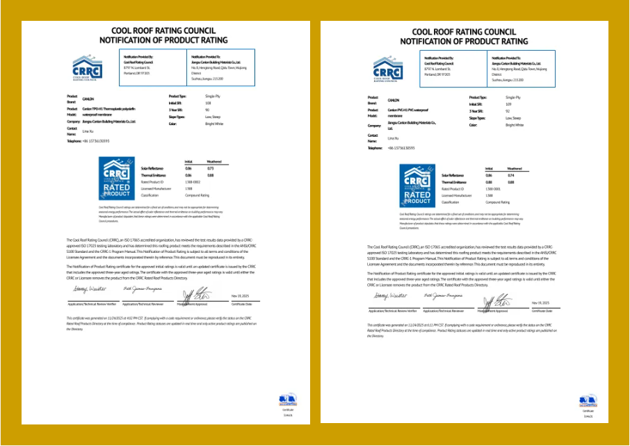 國際凱倫 | 凱倫TPO/PVC防水卷材通過美國冷屋面評級委員會(CRRC)產(chǎn)品評級認(rèn)可